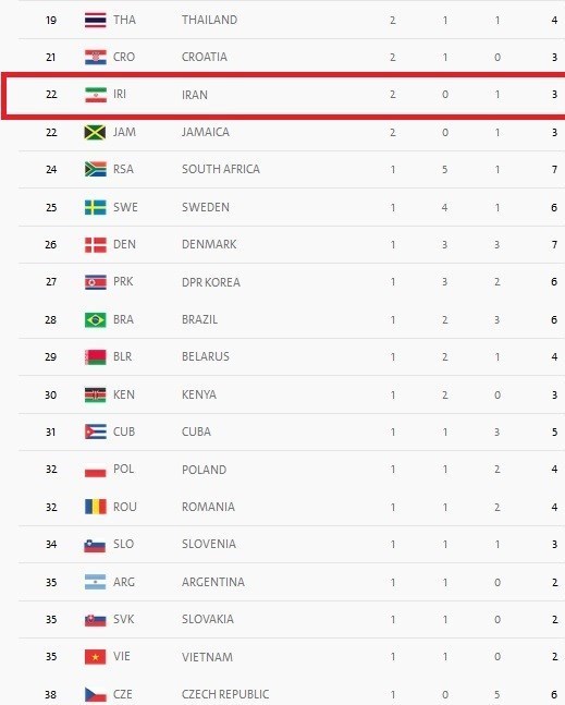 به گزارش تسنیم، در پایان این روز کاروان ایران با مدال برنز سعید عبدولی، توانست با 2 طلا و یک برنز به طور مشترک با جامائیکا در رده بیست و دوم قرار بگیرد.