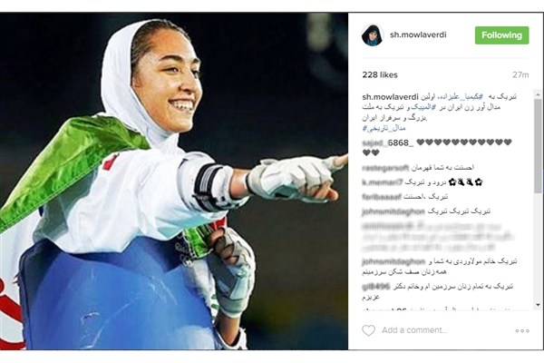 به گزارش خبرنگار اجتماعی خبرگزاری آنا، شهیندخت مولاوردی، معاون رئیس جمهوری در امور زنان و خانواده در صفحه اینستاگرام خود به کیمیا علیزاده اولین مدال آور زن ایران در المپیک ریو2016 تبریک گفت.