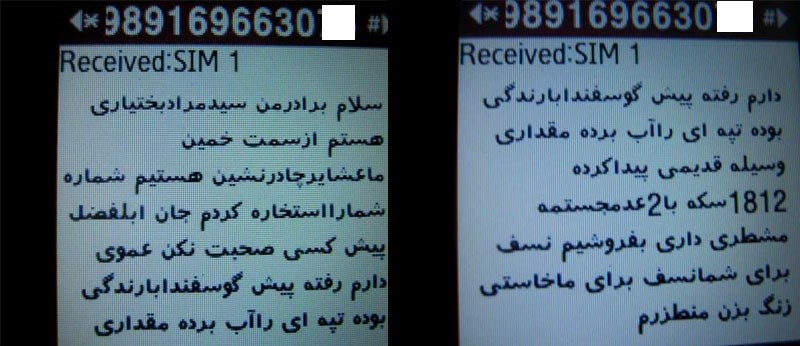 ما عشایر چادرنشین هستیم. شماره شما را استخاره کردم جان ابلفضل پیش کسی صحبت نکن عموی دارم رفته پیش گوسفندا بارندگی بوده تپهای را آب برده مقداری وسیله قدیمی پیدا کرده 1812 سکه با 2 عد مجسمه مشطری داری بفروشیم نسف برای شما نسف برای ما خاستی زنگ بزن منطزرم.