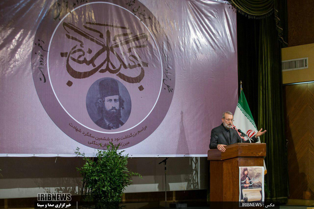 رییس مجلس شورای اسلامی ، با اشاره به اینکه میرزا کوچک جنگلی نمونه مینیاتوری از انقلاب اسلامی ایران را در مقطعی از تاریخ این سرزمین شکل داده بود افزود : امروز هم با رهبری و زعامت رهبر انقلاب و ایستادگی همه جانبه ملت بزرگ ایران ، برای سرافرازی و پایداری نظام و انقلاب اسلامی گام های مهم و محکمی برداشته شده و می شود.