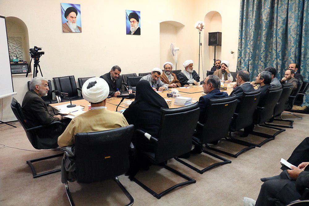 رجانیوز، در این جلسه که با حضور دکتر جلیلی برگزار شد، آیت الله کعبی استاد خارج فقه و اصول در حوزه علمیه قم، صاحب نظر در فقه حکومتی و حقوق عمومی و نماینده مردم خوزستان در مجلس خبرگان رهبری، حجه الاسلام والمسلمین دکتر حمید پارسانیا عضو شورای عالی انقلاب فرهنگی، عضو هیات علمی دانشگاه باقرالعلوم علیه السلام و استاد دانشکده علوم اجتماعی دانشگاه تهران، حجه الاسلام والمسلمین دکتر عبدالحسین خسروپناه رئیس مؤسسه پژوهشی حکمت و فلسفه، حجه الاسلام والمسلمین دکتر علی ذوعلم رئیس پژوهشکده فرهنگ و مطالعات اجتماعی پژوهشگاه فرهنگ و اندیشه اسلامی، حجه الاسلام و المسلمین دکتر احمد رهدار رییس مؤسسه مطالعات و تحقیقات اسلامی فتوح و استاد حوزه و دانشگاه، دکتر کبری خزعلی نماينده شوراي عالي انقلاب فرهنگي در شوراي زنان و استاد حوزه و دانشگاه، دکتر فرشاد شریعت رییس دانشکده معارف اسلامی و علوم سیاسی دانشگاه امام صادق علیه السلام، دکتر محمد حسین یادگاری رییس سابق جهاد دانشگاهی و عضو هیات علمی دانشگاه تربیت مدرس، دکتر مهدی ناظمی اردکانی دبیر کارگروه مدیریت کلان دستگاههای فرهنگی شورای عالی انقلاب فرهنگی، دکتر محمد هادی همایون رئیس دانشکده معارف اسلامی و فرهنگ و ارتباطات دانشگاه امام صادق علیه السلام، دکتر کاظم عبادی پژوهشگر و محقق حوزه فرهنگ، محمد لطفی زاده کارشناس مسایل فرهنگی و علی جوادی فعال فرهنگی حضور داشتند.