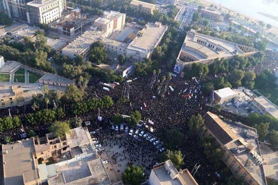 مردم خوزستان با عزاداری و سوگواری پیکر مطهر سپهبد شهید سلیمانی، ابومهدی المهندس و یاران شهیدشان را تشییع میکنند و جمعیت باشکوهی در این مراسم حضور دارند.
