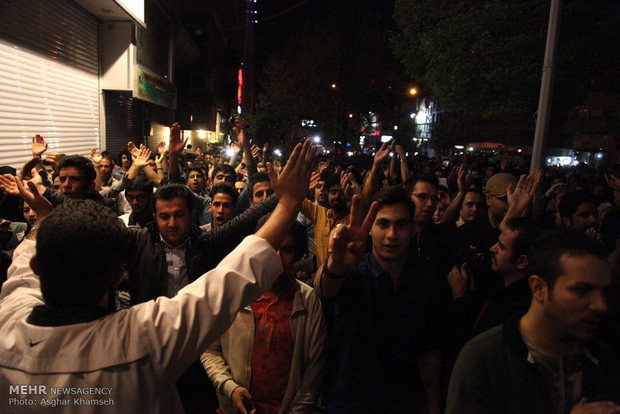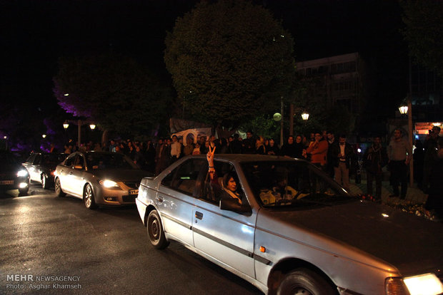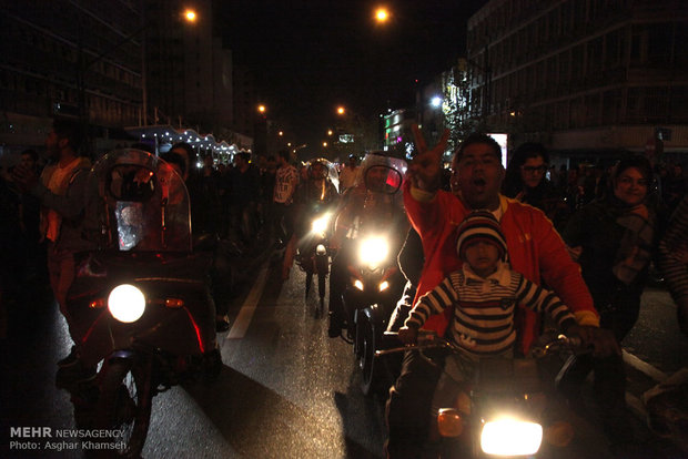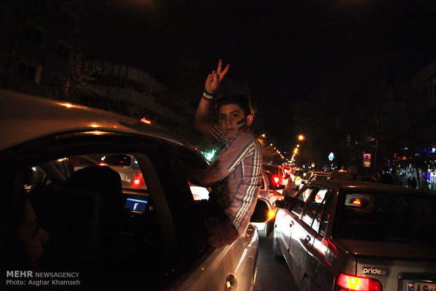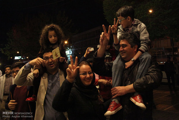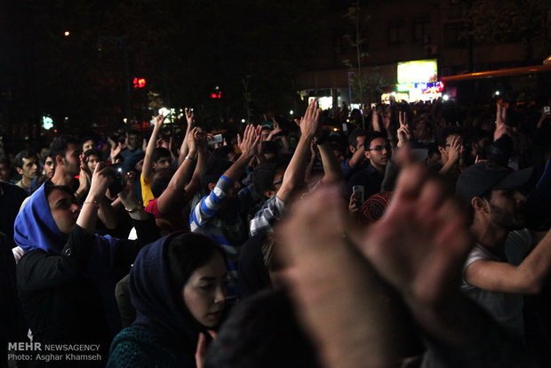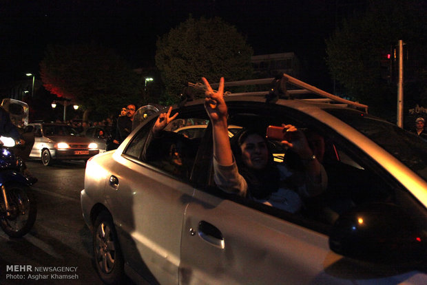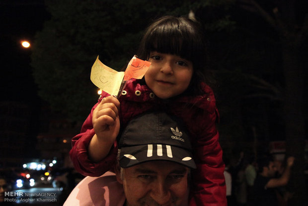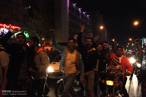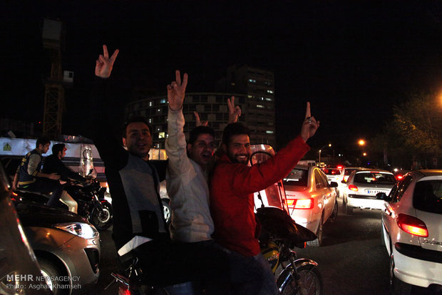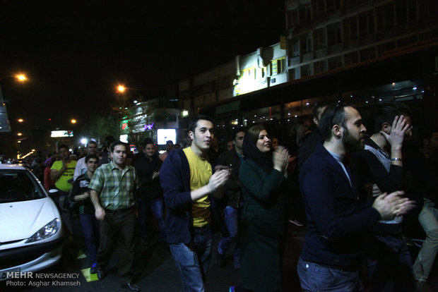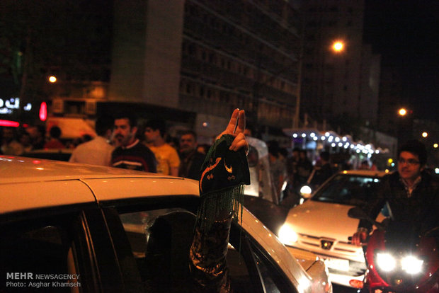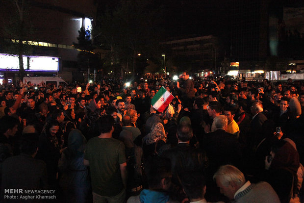مردم تهران شامگاه جمعه با حضور در خیابانها شادی و حمایت خود را از نتیجه مذاکرات تیم هسته ای ایران با 1+5 اعلام داشتند.