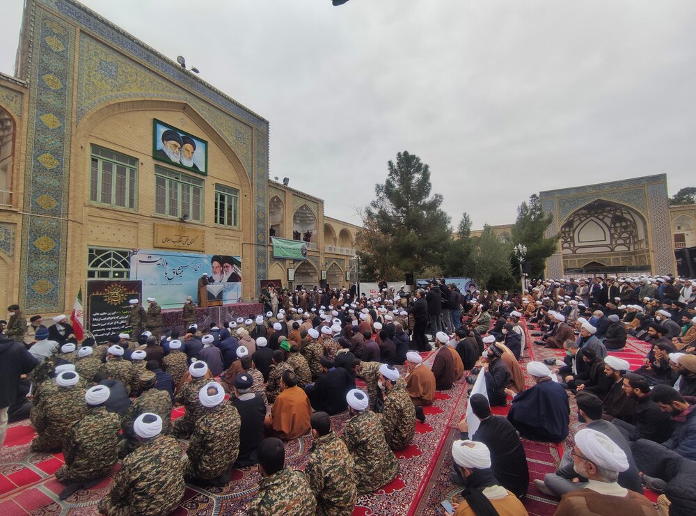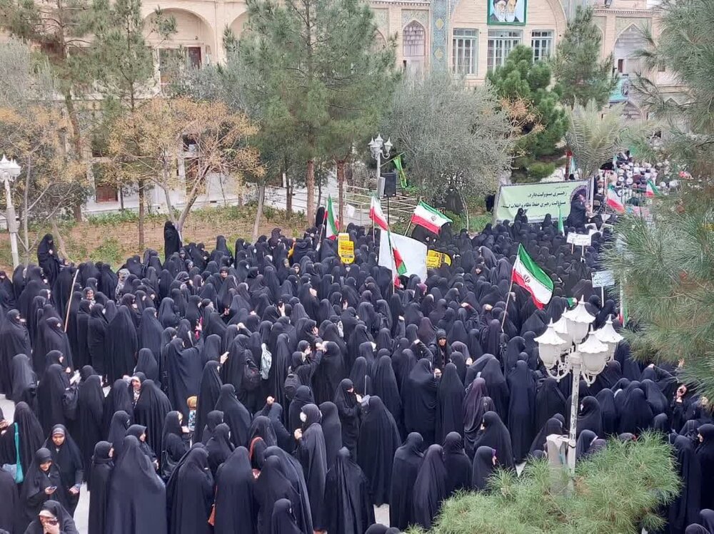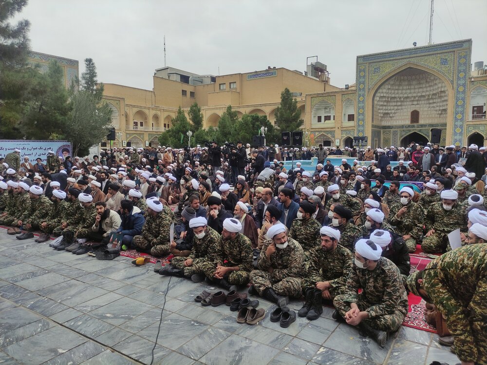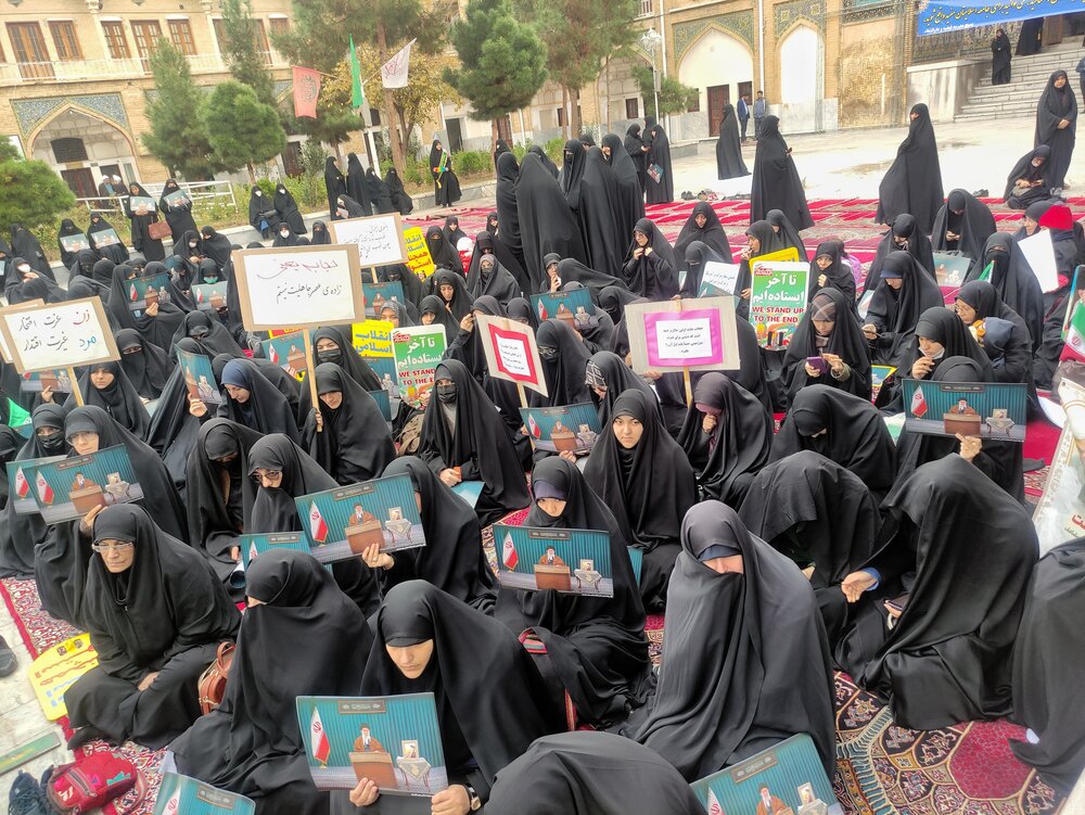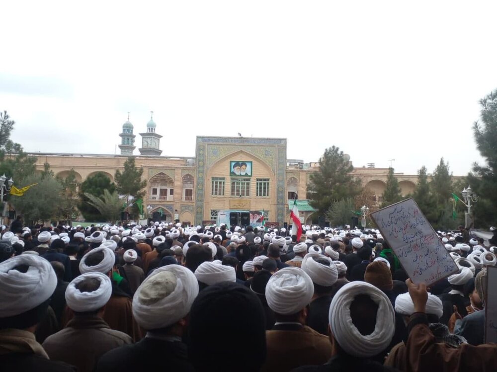طلاب برادر و خواهر حاضر در این تجمع با پلاکاردهایی که در دست دارند با شعارهایی از جمله «علمدار ولایت حوزویان فدایت»،«وحدت مردم ما رمز سعادت ماست»،«پیروی از ولایت باعث عزت ماست»،« برائت از فتنه گر شعار ملت ماست»، «ولایت فقیه ماندگار است به دست او پرچم اقتدار است»، «ولی فقیه پاینده است خورشید حق همیشه تابنده است»، حمایت خود را از نظام اسلامی اعلام میدارند و همچنین با شعار مرگ بر منافق و آشوبگر، اغتشاشات و حوادث اخیر را محکوم می کنند.