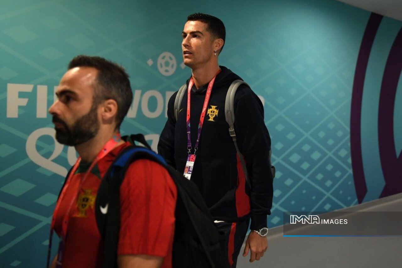 * ورود رونالدو به رختکن تیم ملی فوتبال پرتغال پیش از شروع بازی.