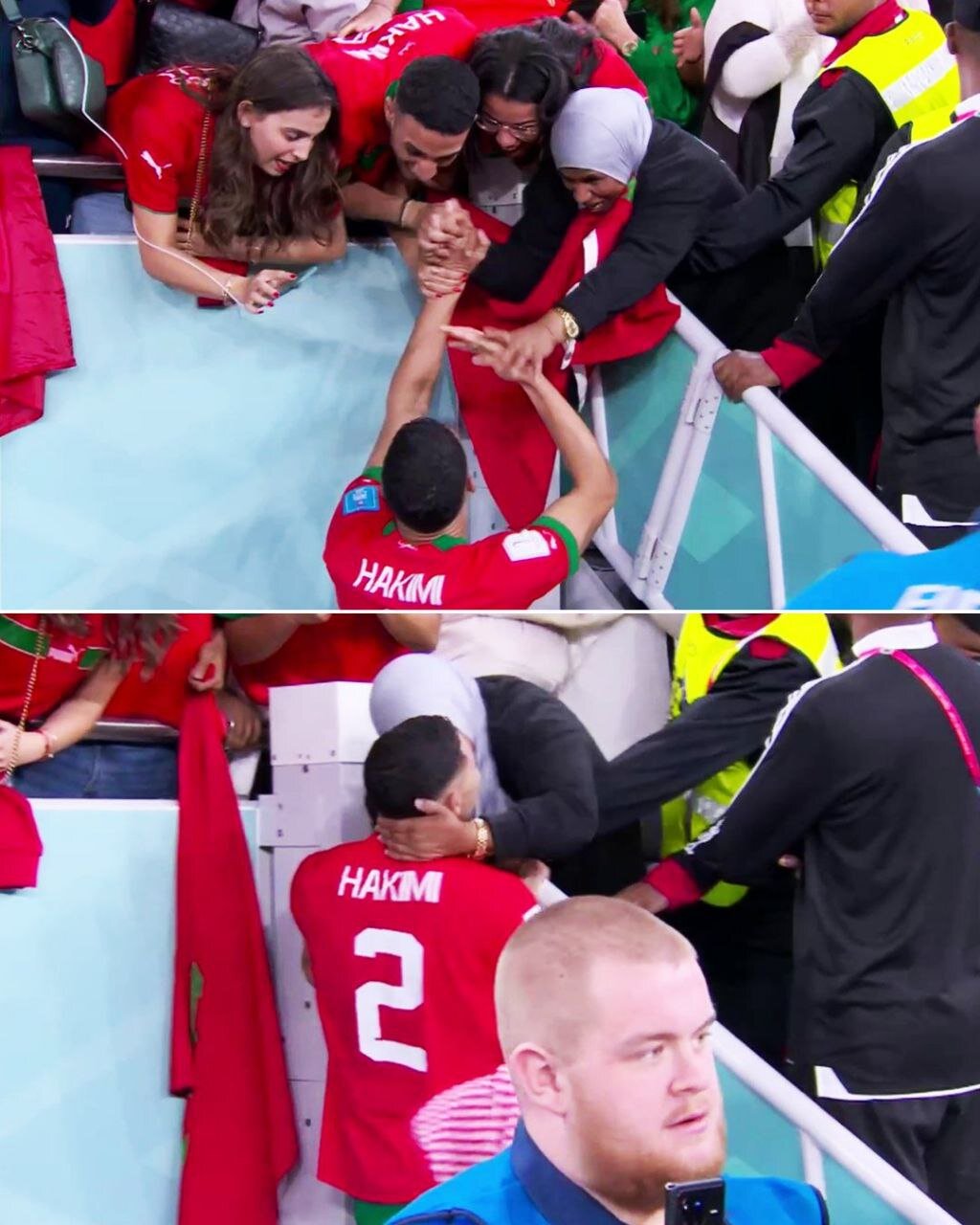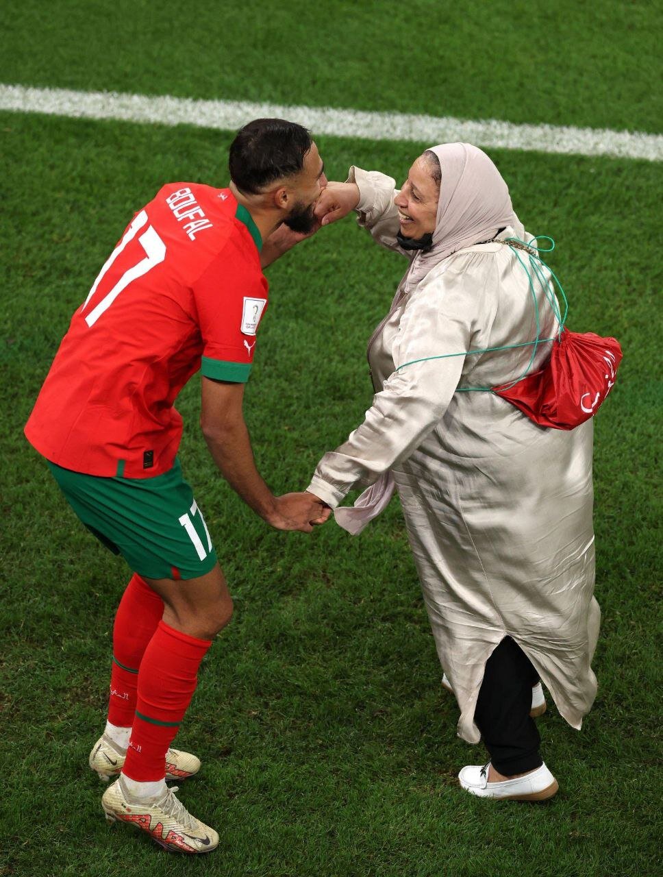 * خوشحالی سفیان بوفال به همراه مادرش.