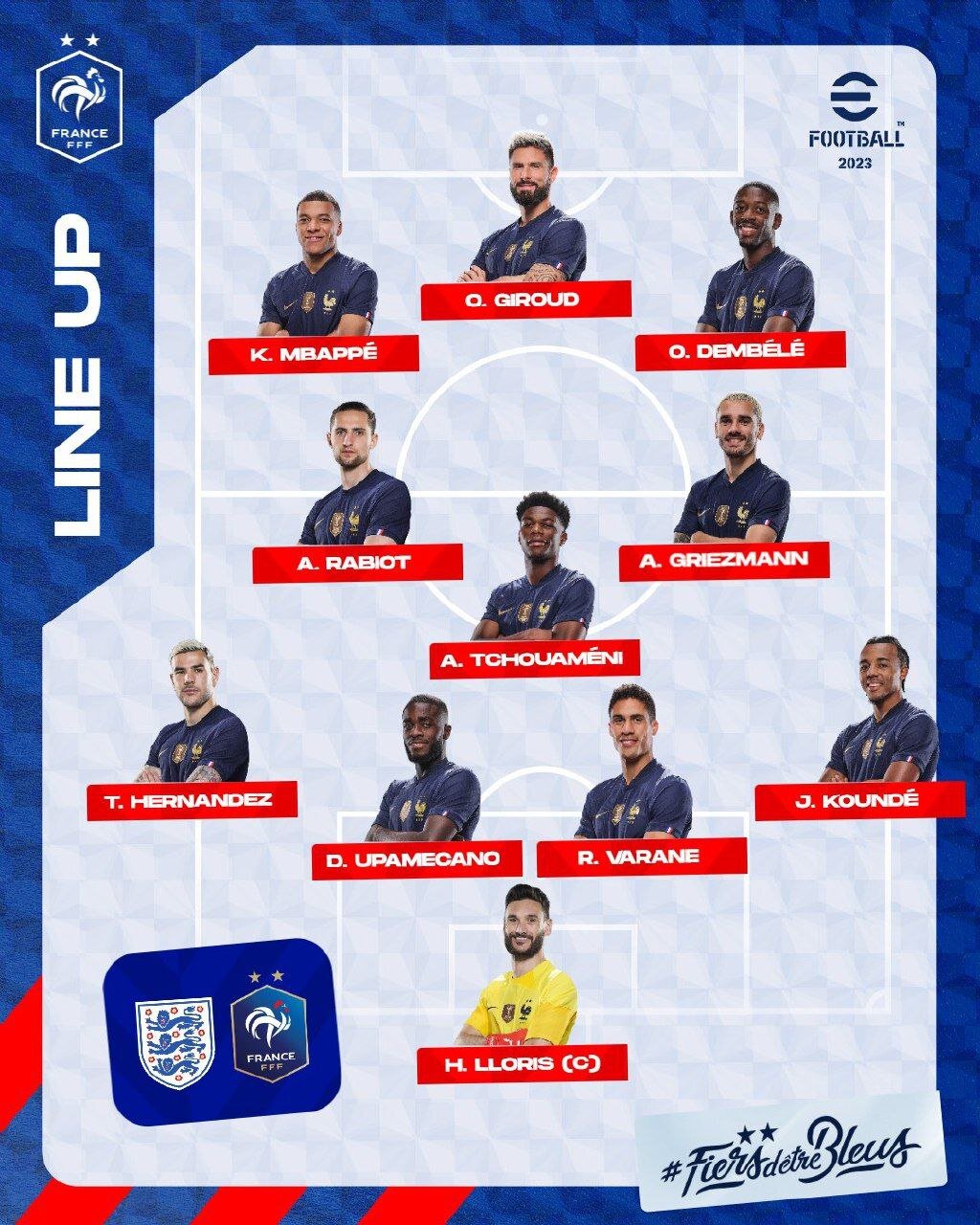 * ترکیب تیم ملی فوتبال فرانسه برای دیدار با انگلیس.