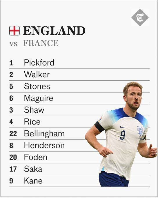 * ترکیب تیم ملی فوتبال انگلیس برابر فرانسه.