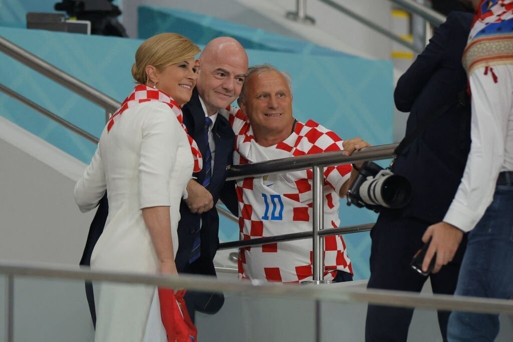 * قاب یادگاری پدر مودریچ، اینفانتینو و کیتاروویچ (رئیس جمهور سابق کرواسی) در حاشیه بازی ردهبندی جام جهانی.