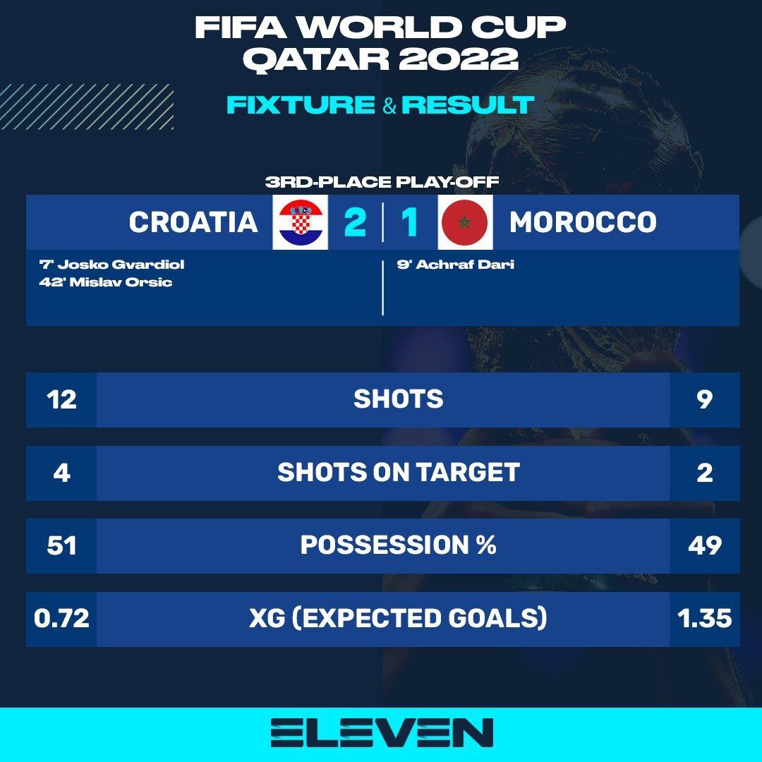 * آمار نهایی دیدار امروز دوتیم مراکش و کرواسی.