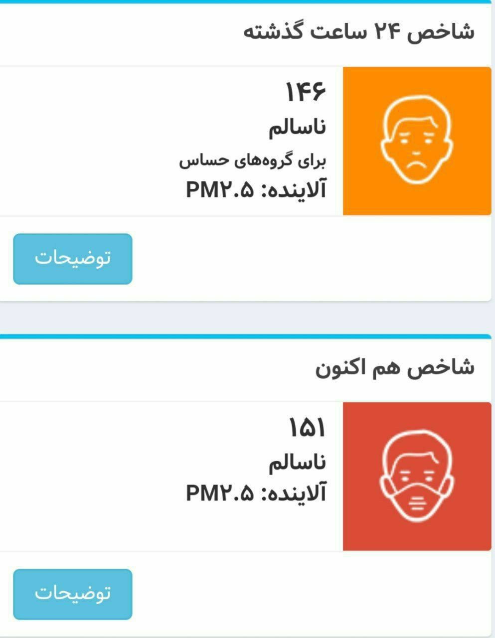 میزان ذرات معلق کمتر از دو و نیم میکرون کمتر از ۱۵۰ شده اما همچنان بالاتر از حد سلامت و در وضعیت نامناسب است.