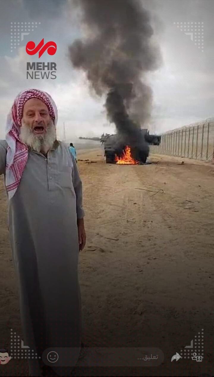 ۹:۱۷ عکس یادگاری فلسطینی ها با تانک منهدم شده ارتش رژیم صهیونیستی