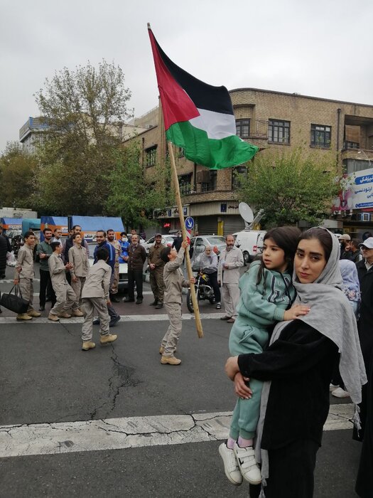 مردم تهران با در دست داشتن پرچم فلسطین در این راهپیمایی حضور یافته و حمایت خود را از مردم فلسطین اعلام کردند.