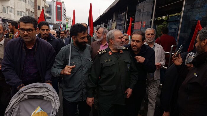 سردار علی فدوی جانشین فرماندهی سپاه پاسداران انقلاب اسلامی هم در راهپیمایی حمایت از فلسطین حضور یافت.
