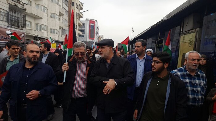 علیرضا زاکانی شهردار تهران هم در راهپیمایی حمایت از فلسطین حضور یافت.