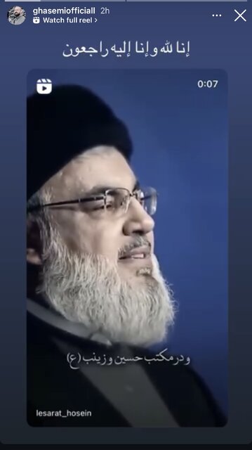 محمدحسین قاسمی تهیهکننده سینما نیز در صفحه خود شهادت سیدحسن نصرالله را تسلیت گفته و در ادامه نیز استوریهایی درباره نسلکشی رژیم صهیونیستی در لبنا منتشر کرده است.