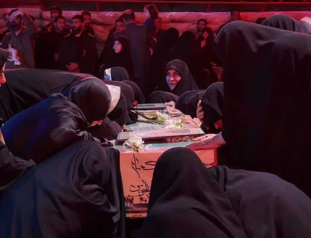 مادران و خواهران شهدا دور پیکر مطهرش حلقه زده بودند و او را همچون فرزندان و برادران شهیدشان در آغوش گرفته بودند و برایش اشک می ریختند و نجوای مادرانه و خواهران سر داده بودند تا جای خالی مادر و خواهرش را احساس نکند. البته بدون شک مادر شیعه حضرت زهرای اطهر سلام الله علیها او را تنها نگذاشته و نمی گذارد و مادری را در حقش تمام کرده اند.