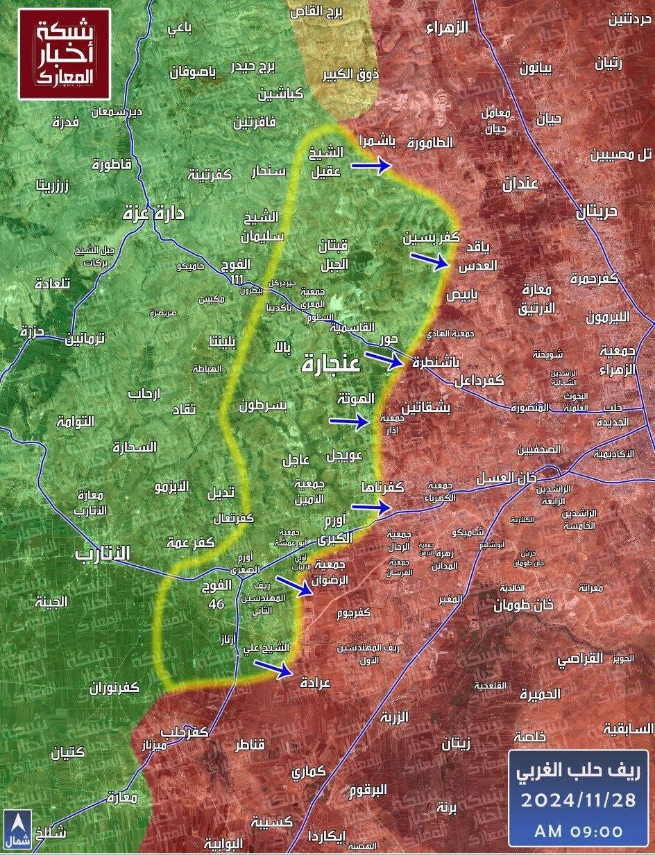 باید دید در روزهای آینده نیروهای دولتی سوریه خواهند توانست از پیشروی نیروهای تحریرالشام به حلب جلوگیری کنند یا نه؟ اخبار تایید نشده حاکی از آن است که شورشیان در چند کیلومتری حلب هستند.