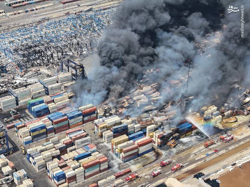 تصاویر هوایی از خسارت ناشی از انفجار در بندر شهید رجایی