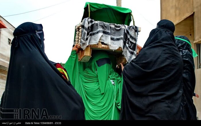 به گزارش ایرنا، سیل جمعیت زنان با روبندهای سبز و سیاه در دست، به خیابان ها سرازیر می شود، چون رودهای کوچک در آغاز هر برزنی به هم پیوند می خورند و دریایی می شوند از داغداران و همدردان زینب(س)، ذکر گویان، بغض در گلو، اشک در چشم و داغ در دل، گام به سمت بقعه امامزاده زیدبن علی (ع) بر می دارند تا روایت پریشانی زینب در ۴۰ منزلگاه و حرکت اصلی به سوی اقیانوس نور و حاجت را آغاز کنند.