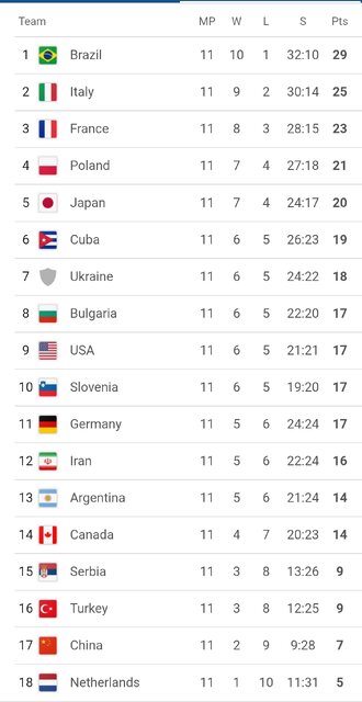 در حال حاضر کوبا، اوکراین، آمریکا، بلغارستان و اسلوونی یک برد بیشتر از ایران دارند و برای کسب رتبه های ششم و هفتم و صعود به مرحله نهایی شانس بیشتری نسبت به ایران دارند.