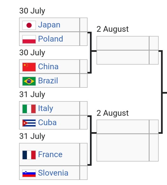 برزیل صدرنشین به مصاف چین خواهد رفت، فرانسه با اسلوونی دیدار می کند و کوبا برابر ایتالیا قرار خواهد گرفت.