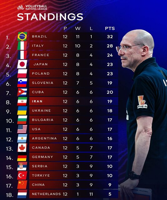 تیم ملی والیبال ایران با وجود کسب شش برد، تا لحظات آخر شانس صعود داشت اما اسلوونی در یک بازی سخت و حساس ۳ بر ۲ صربستان را شکست داد تا جای ایران را در رتبه هفتم بگیرد و به مرحله نهایی صعود کند.