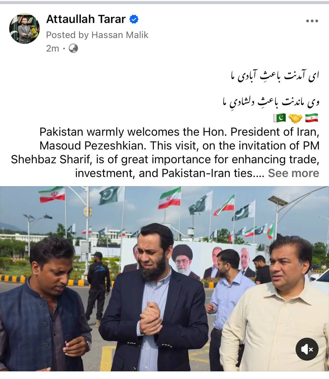 عطاالله طرار وزیر اطلاع رسانی پاکستان درباره این سفر در حساب ایکس خود نوشت: پاکستان از رئیس جمهور محترم ایران، به گرمی استقبال میکند. این سفر که به دعوت نخست وزیر شهباز شریف انجام میشود، برای افزایش تجارت، سرمایهگذاری و روابط پاکستان و ایران از اهمیت بالایی برخوردار است.