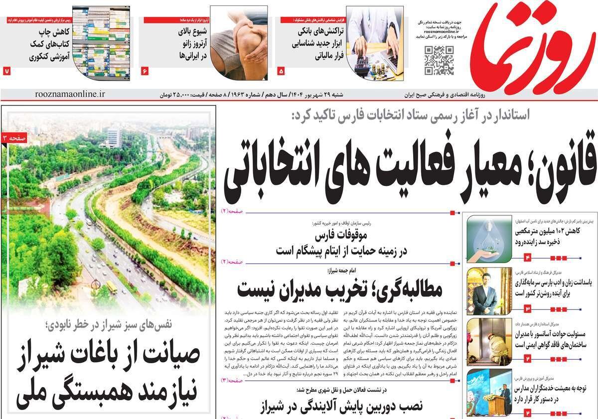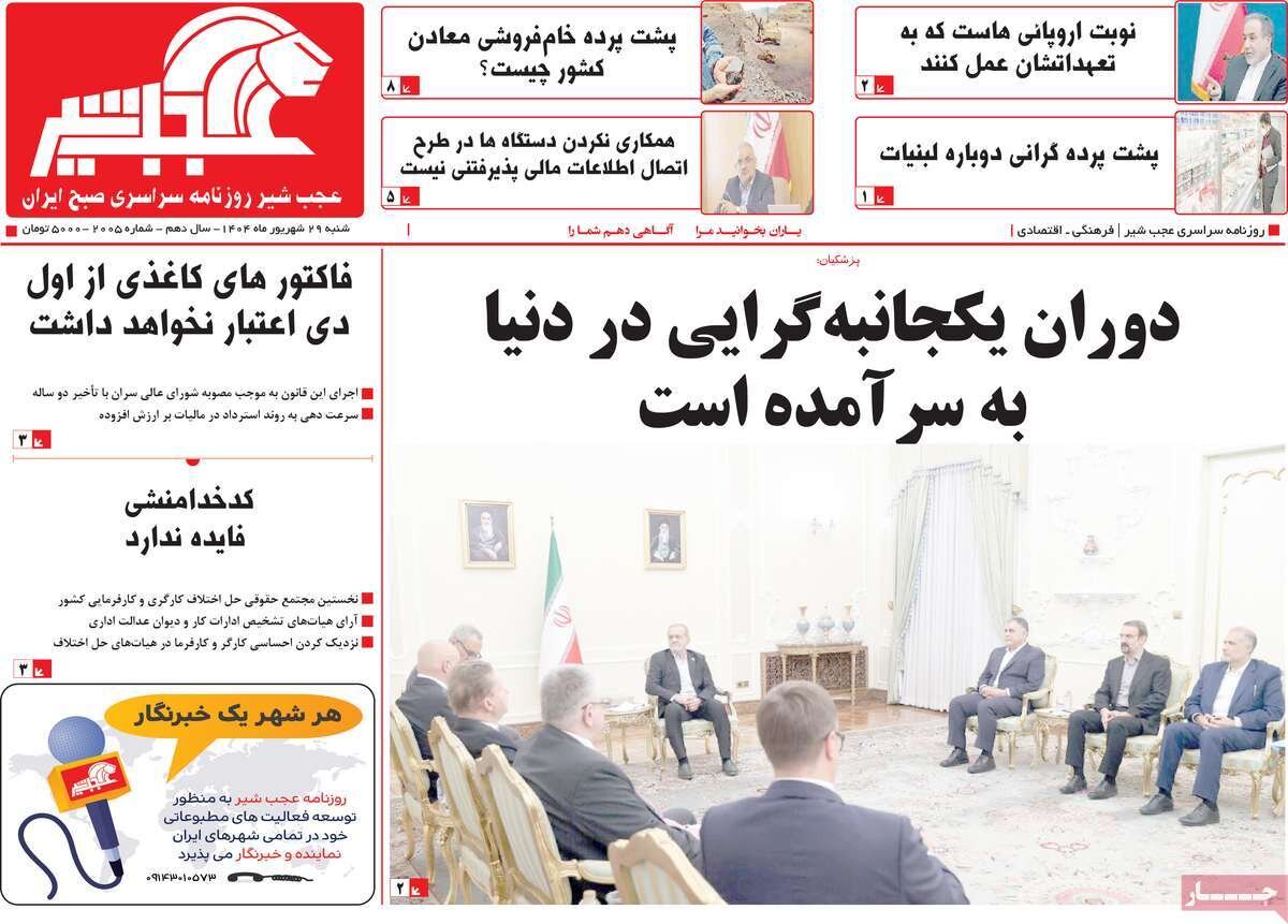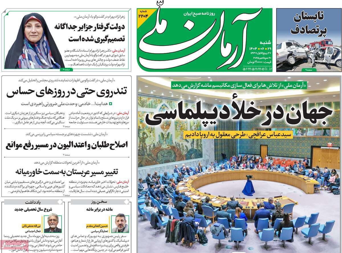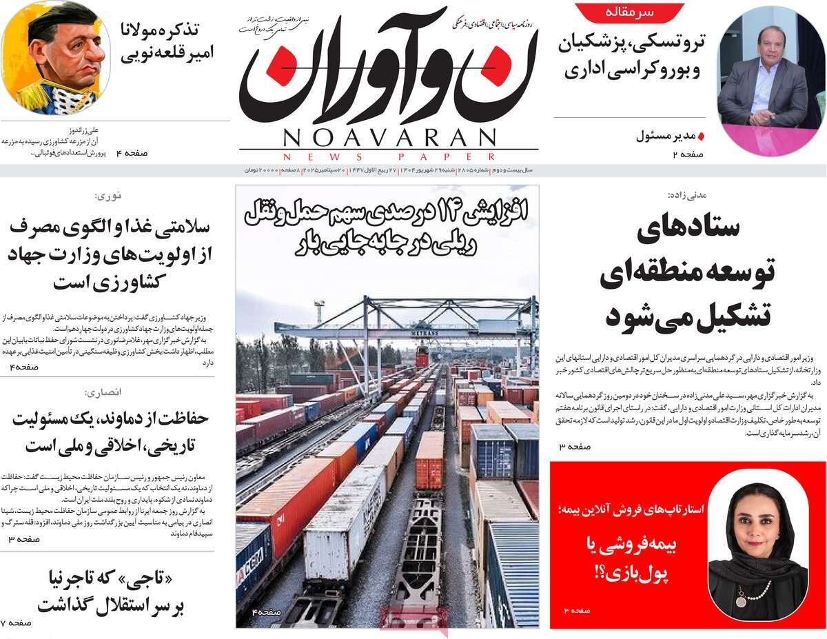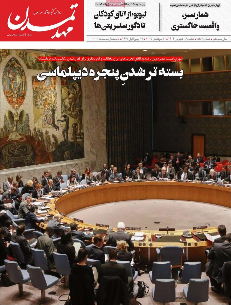 شنبه ۲۹ شهریور ۱۴۰۴ - ۰۸:۴۵ شناسهٔ خبر: 74924701 - سرویس سیاسی نسخه قابل چاپ منبع: مهر | لینک خبر روزنامههای صبح شنبه ۲۹ شهریور ۱۴۰۴ روزنامه های صبح امروز درباره بازگشت تحریم های سازمان ملل نوشتند. صاحبخبر - ∎