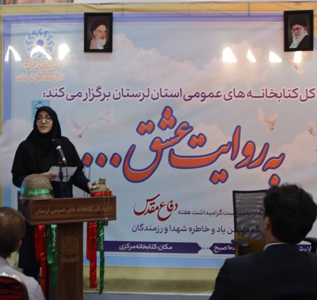 همزمان با هفته دفاع مقدس، ویژه برنامه فرهنگی و معنوی «به روایت عشق» با محوریت روایتگری راویان دفاع مقدس، با حضور الهام برنا، سرپرست ادارهکل کتابخانههای عمومی لرستان؛ نورالدین درمنان، فرماندار خرمآباد؛ سیروس ابراهیمی، مشاور استاندار در امور ایثارگران، جمعی از مدیرانکل دستگاههای اجرایی، مسئولان استانی و خانواده معظم شهدا و ایثارگران در کتابخانه مرکزی خرمآباد برگزار شد.