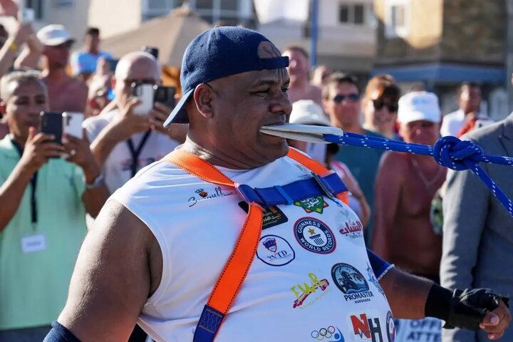 چهارشنبه ۱۶ مهر ۱۴۰۴ - ۱۴:۱۲ شناسهٔ خبر: 75234050 - سرویس عکس نسخه قابل چاپ منبع: همشهری آنلاین | لینک خبر این مرد ۲ کشتی ۱۱۰۰ تُنی را تنها با دندانهایش جابهجا کرد | تصاویر محروس، ۴۴ ساله، تاکنون توانسته خودروها و قطارها را بکشد و در جدیدترین اقدام خود، دو کشتی با مجموع وزن بیش از ۱۱۰۰ تُن را تنها با دندانهایش جابهجا کرد. صاحبخبر - ∎
