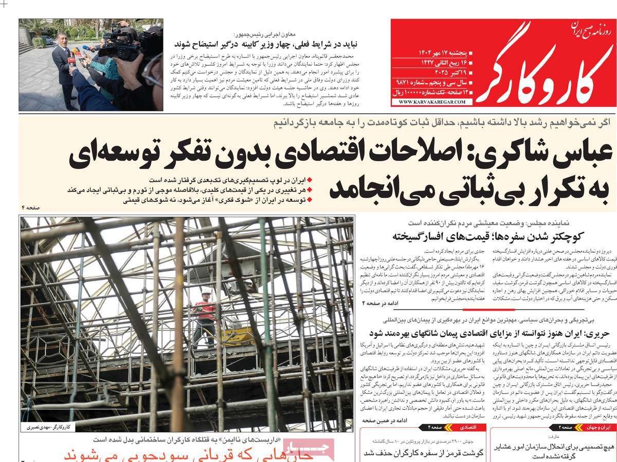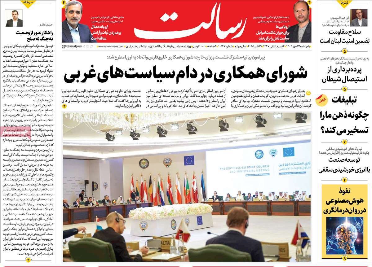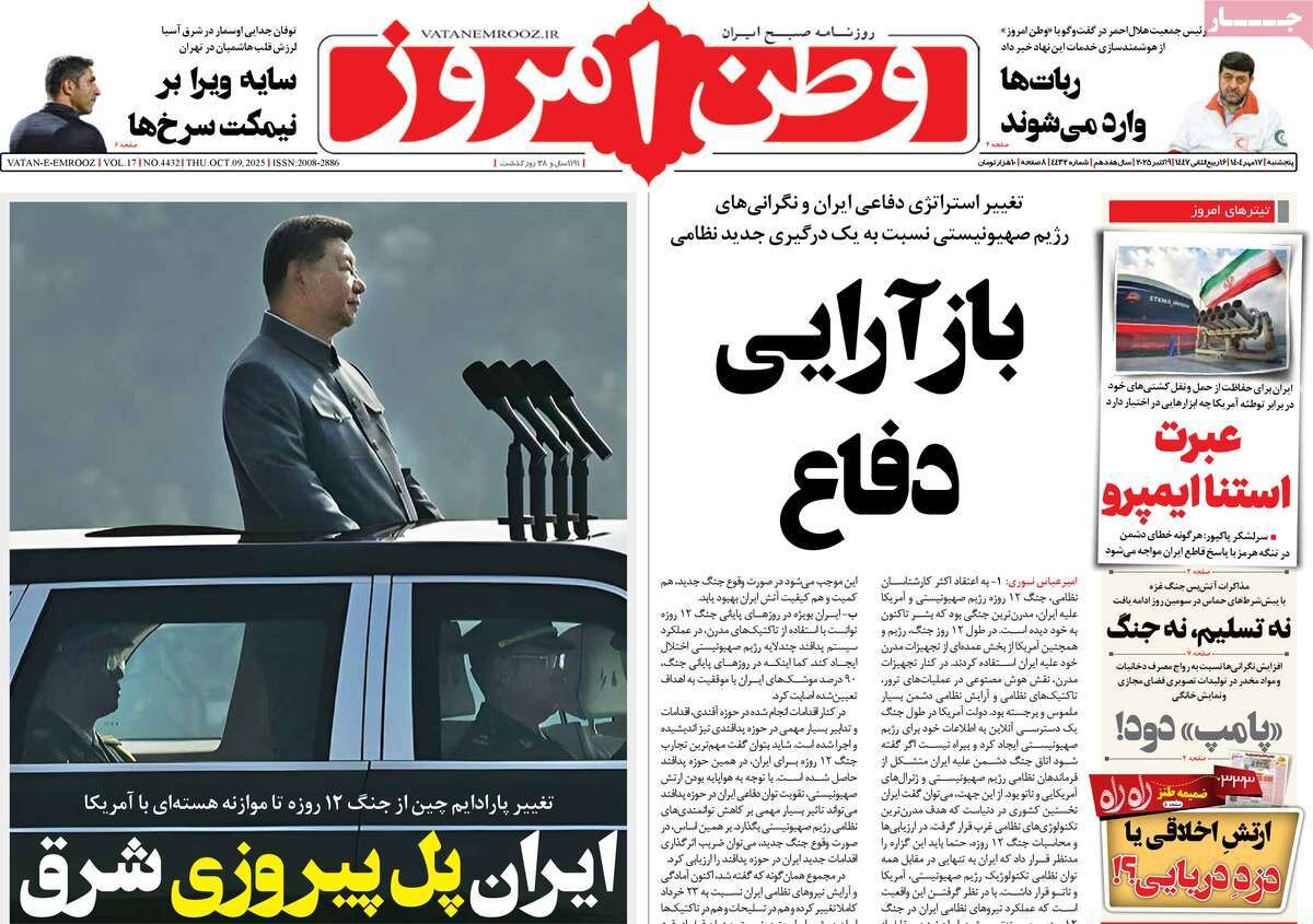 پنجشنبه ۱۷ مهر ۱۴۰۴ - ۰۸:۵۶ شناسهٔ خبر: 75244108 - سرویس سیاسی نسخه قابل چاپ منبع: مهر | لینک خبر روزنامههای صبح پنجشنبه ۱۷ مهر ۱۴۰۴ تیتر یک روزنامههای امروز به مسائل مختلف روز در بخشهای سیاسی، اقتصادی و اجتماعی پرداختند. صاحبخبر - ∎
