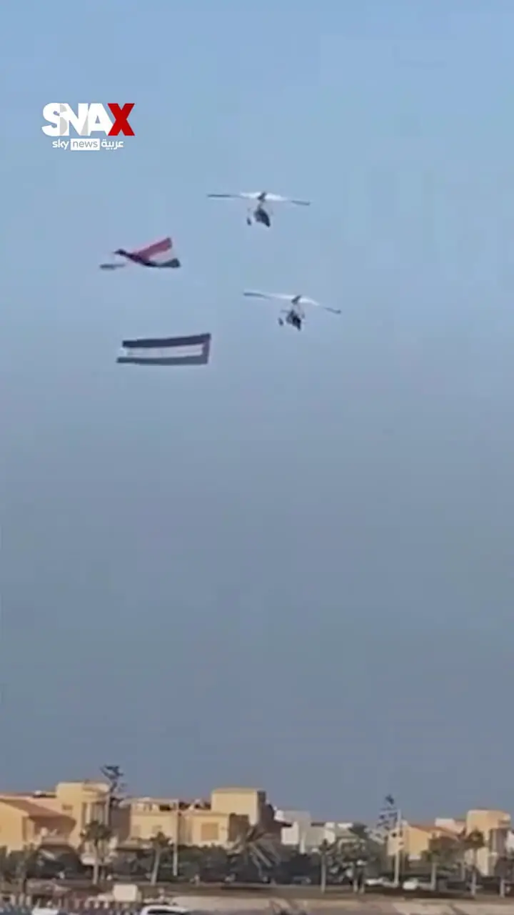در پی توافق اخیر درباره نوار غزه ، دو فروند هواپیمای نیروی هوایی مصر روز پنجشنبه بر فراز آسمان شرمالشیخ به پرواز درآمدند و با نمایش پرچمهای مصر و فلسطین، صحنهای نمادین از همبستگی میان دو ملت را رقم زدند.