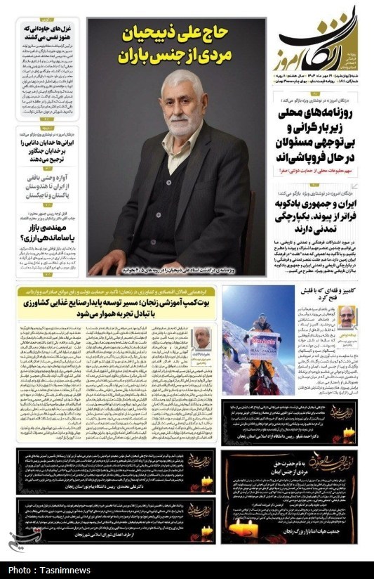 به گزارش خبرگزاری تسنیم از زنجان، تصاویر منتخب صفحات نخست روزنامههای شنبه 19 مهر در استان زنجان (زنگان امروز، مردم نو و صدای زنجان) منتشر شد. این صفحات نخست بازتابدهنده مهمترین رویدادها، اخبار و تحولات اقتصادی، گردشگری، محیطزیستی و اجتماعی استان هستند و نگاه رسانهها را به مسائل روز زنجان ارائه میدهند.