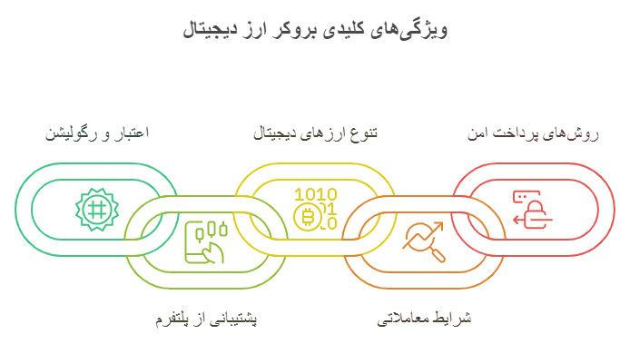 برای انتخاب بهترین بروکر ارز دیجیتال، توجه به چند فاکتور کلیدی اهمیت دارد. رعایت این نکات به شما کمک میکند بروکری مطمئن و مناسب پیدا کنید.