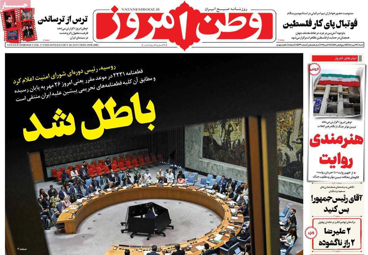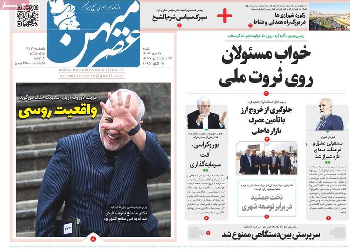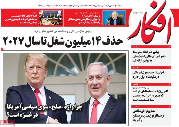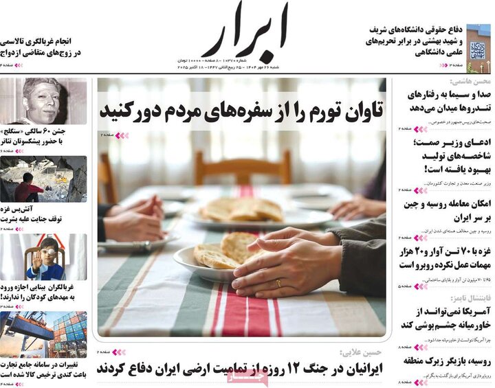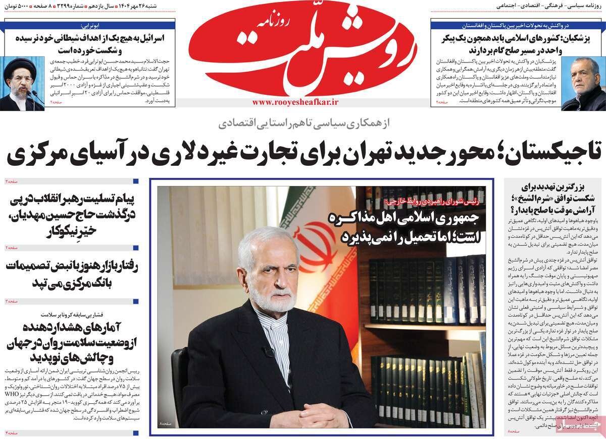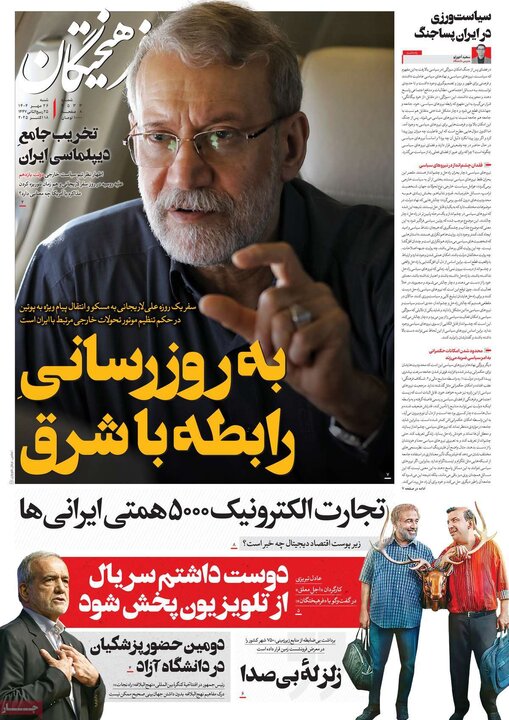 شنبه ۲۶ مهر ۱۴۰۴ - ۰۹:۰۳ شناسهٔ خبر: 75380813 - سرویس سیاسی نسخه قابل چاپ منبع: مهر | لینک خبر روزنامههای صبح شنبه ۲۶ مهر ۱۴۰۴ اکثر روزنامههای صبح امروز تیتر یک خود را به تحلیل و بررسی سفر لاریجانی به مسکو اختصاص دادند. صاحبخبر - ∎
