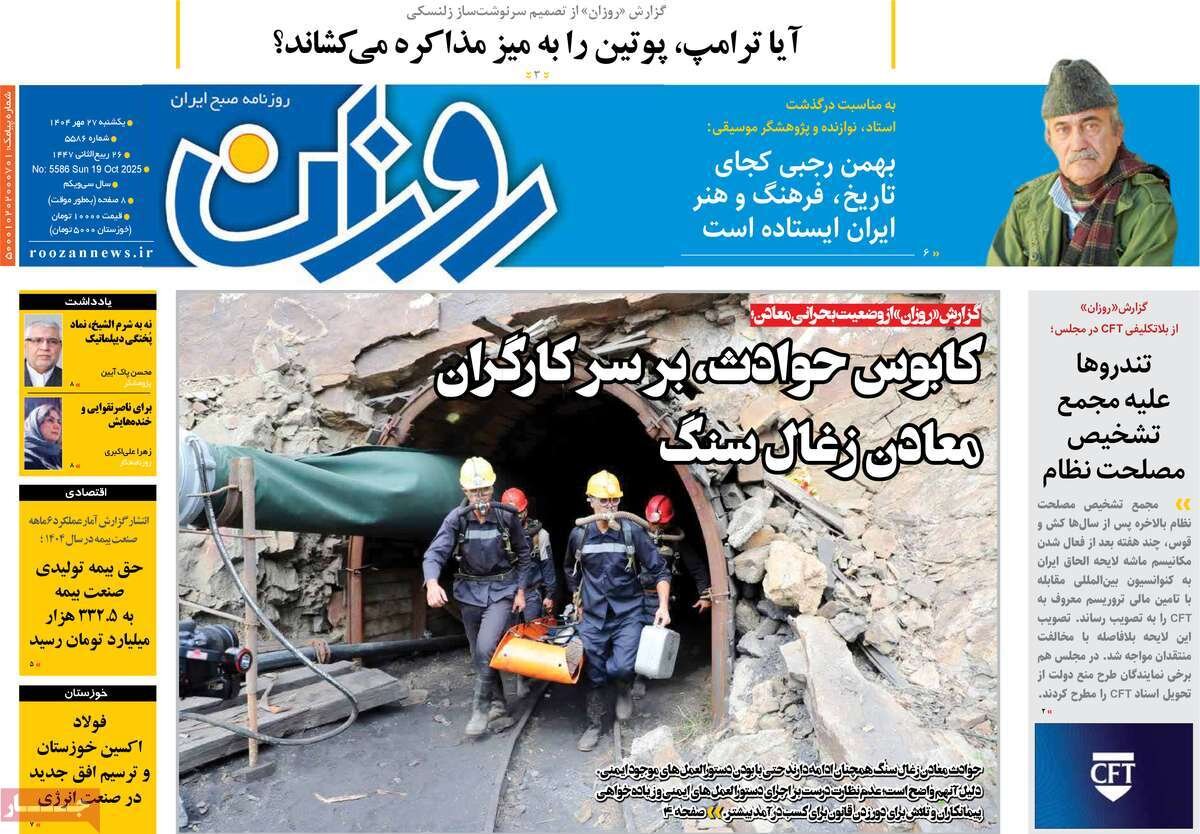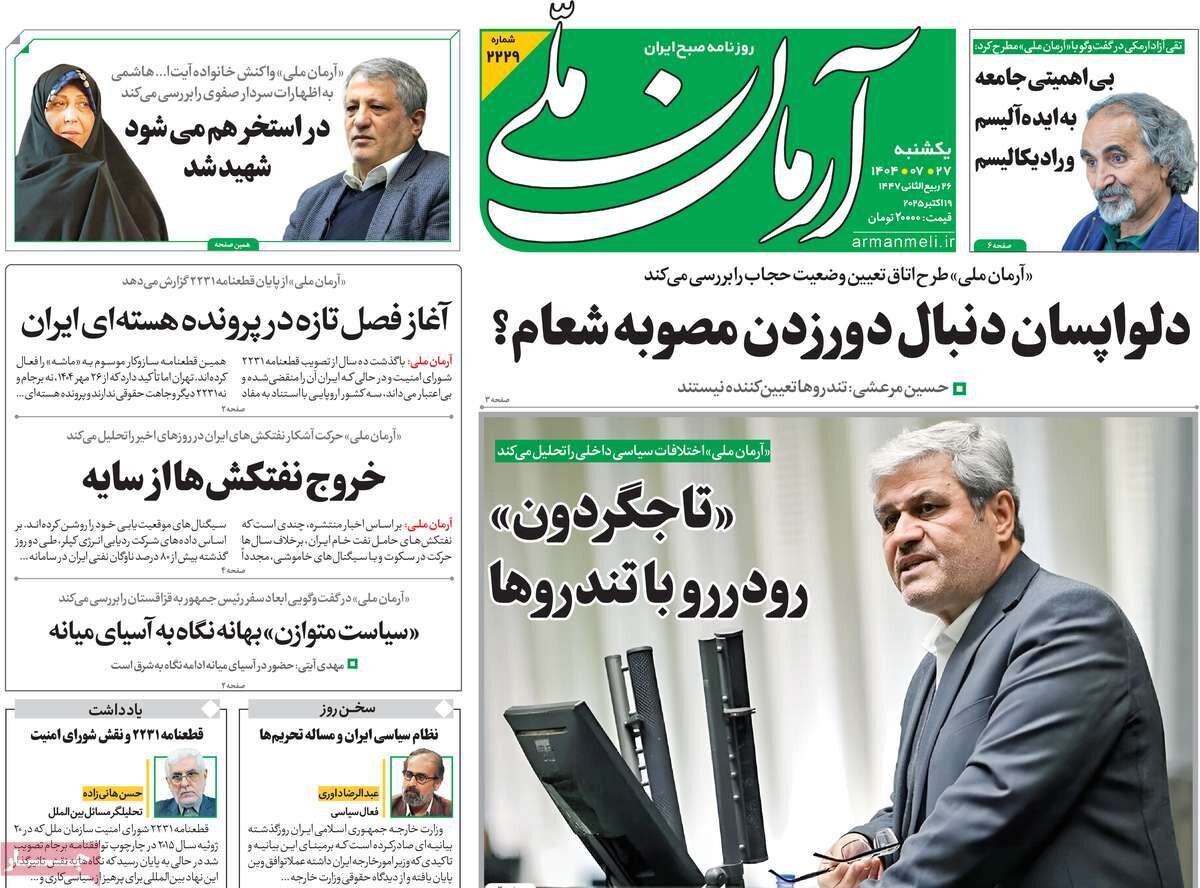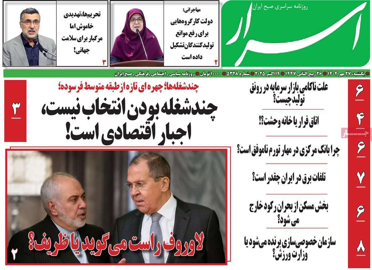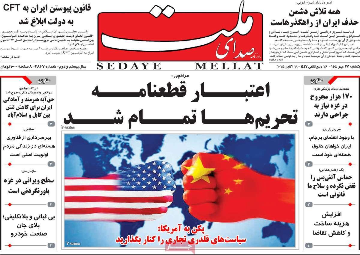یکشنبه ۲۷ مهر ۱۴۰۴ - ۰۹:۵۳ شناسهٔ خبر: 75400019 - سرویس سیاسی نسخه قابل چاپ منبع: مهر | لینک خبر روزنامههای صبح یکشنبه ۲۷ مهر ۱۴۰۴ مطبوعات امروز کشور تیتر یک خود را به اعلام پایان رسمی برجام و آغاز دوران پسابرجام اختصاص دادند. صاحبخبر - ∎