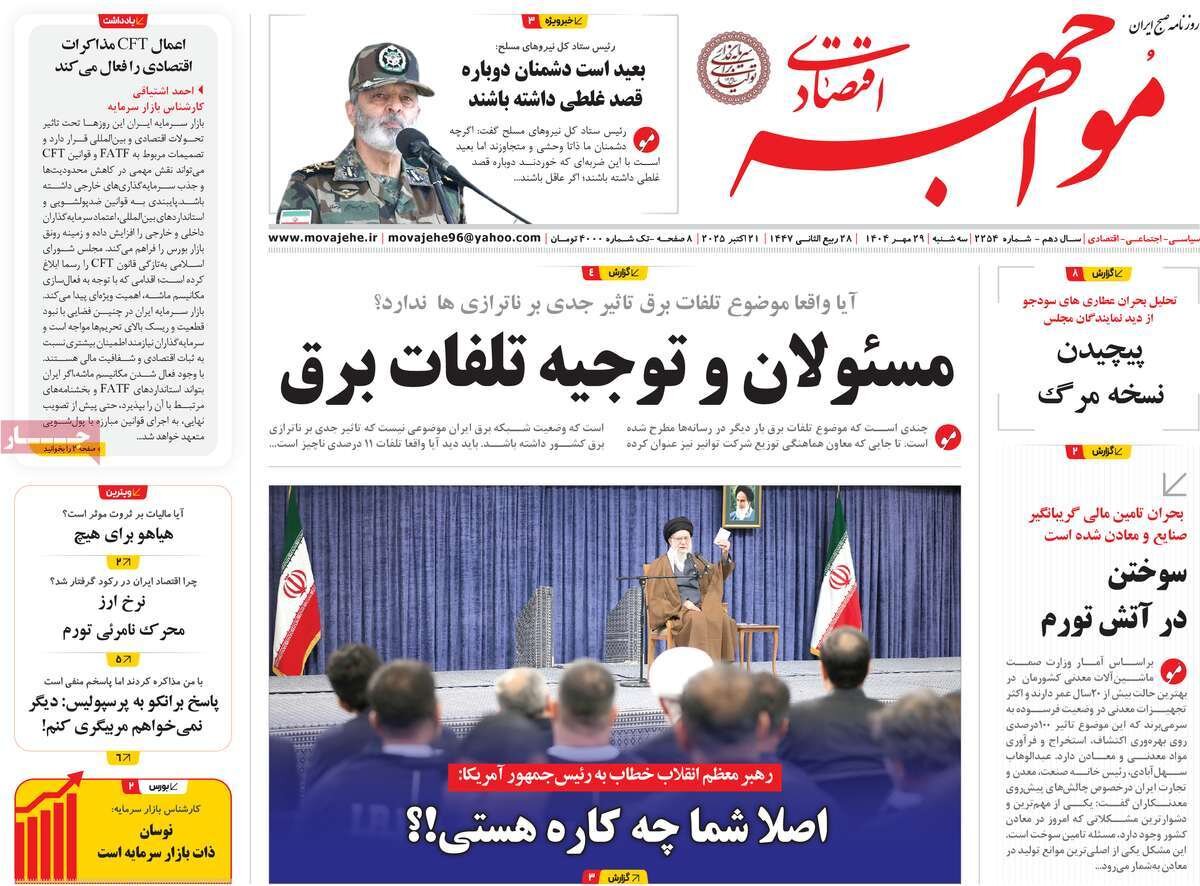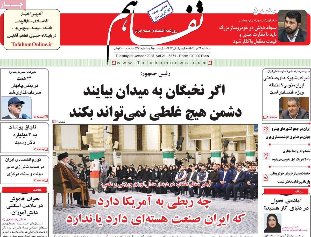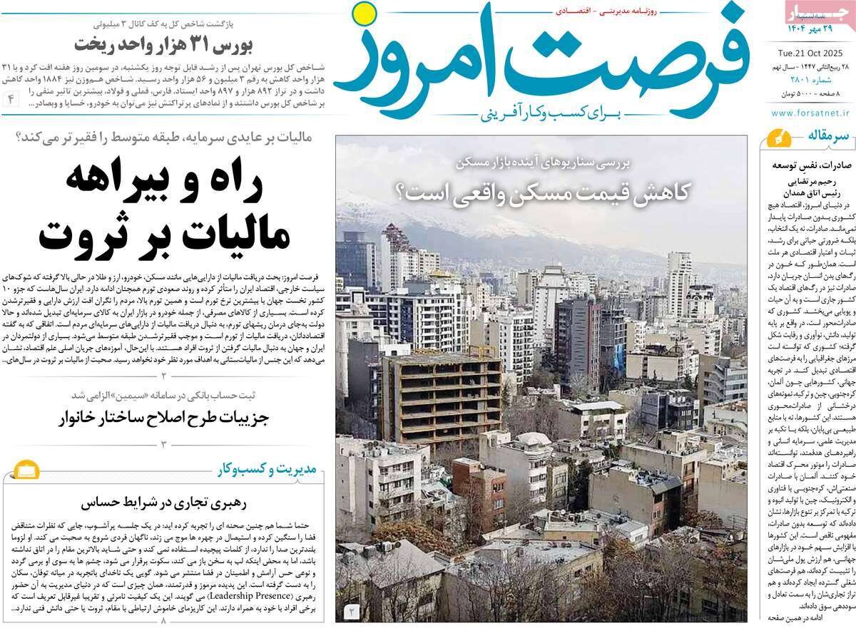 سهشنبه ۲۹ مهر ۱۴۰۴ - ۰۹:۱۵ شناسهٔ خبر: 75435660 - سرویس اقتصادی نسخه قابل چاپ منبع: مهر | لینک خبر روزنامههای اقتصادی سهشنبه ۲۹ مهر ۱۴۰۴ روزنامههای اقتصادی امروز صفحه اول خود را به مسائلی مثل بازار مسکن، وضعیت بازار ارز و طلا و بحران آب در کشور اختصاص دادند. صاحبخبر - ∎
