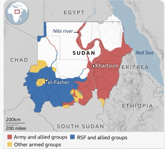 به گزارش روز یکشنبه ایرنا، ارتش سودان هنوز واکنشی به ادعای شورشیان و وضعیت کنونی نیروهای نظامی سودان در منطقه الفاشر نشان نداده است. شورشیان «پشتیبانی سریع» در مدت ۱۸ ماه گذشته در نبرد با ارتش سودان و جنگجویان محلی، برای محاصره شهر «فاشر» مرکز ایالت «دارفور شمالی» تلاش کرده و با حملات توپخانهای و پهپادی غیرنظامیان را هدف قرار دادهاند. اقدامات شورشیان در این مدت منجر به کمبود مواد غذایی و افزایش گرسنگی در میان حدود ۲۵۰ هزار نفر ساکنان باقیمانده در این شهر شده است.