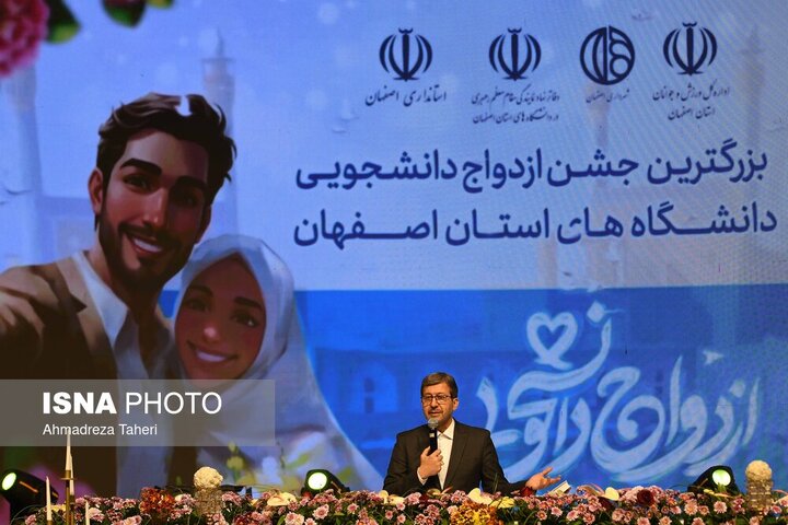 جشن ازدواج دانشجویی ۱۵۰۰ زوج دانشجو از سراسر دانشگاههای استان اصفهان، شامگاه شنبه ۳ آبان با حضور حجتالاسلام والمسلمین مصطفی رستمی، رئیس نهاد نمایندگی مقام معظم رهبری در دانشگاهها و مهدی جمالینژاد، استاندار اصفهان در مرکز همایشهای بینالمللی اصفهان برگزار شد.