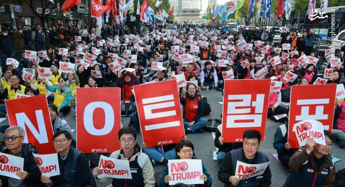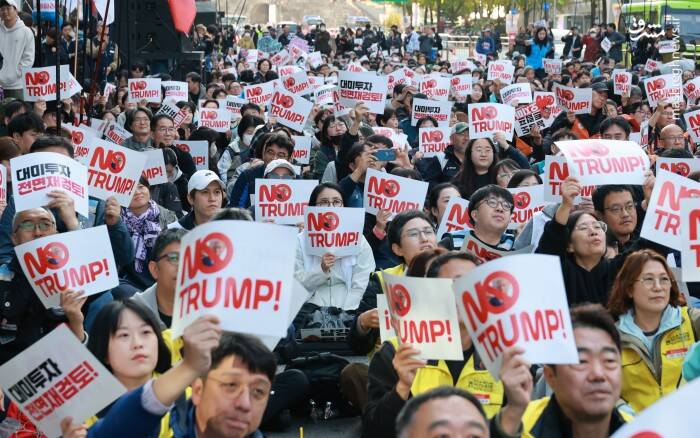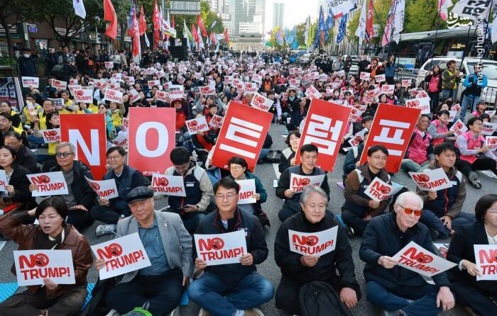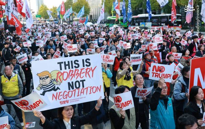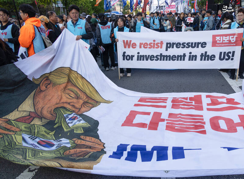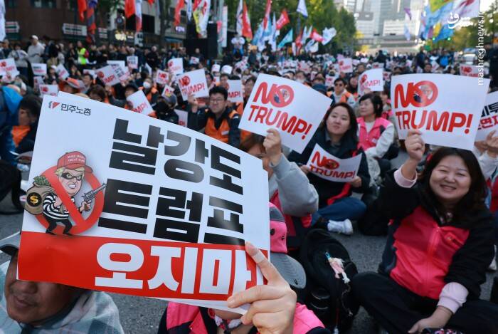 به گزارش مشرق، صدها نفر در سئول علیه فشارهای رئیسجمهور آمریکا، دونالد ترامپ، برای افزایش سرمایهگذاری کره جنوبی در آمریکا تجمع کردند. این اعتراضها همزمان با سفر ترامپ به آسیا و دیدارهای تجاری او با شی جینپینگ و احتمال ملاقات با کیم جونگ اون برگزار شد.
