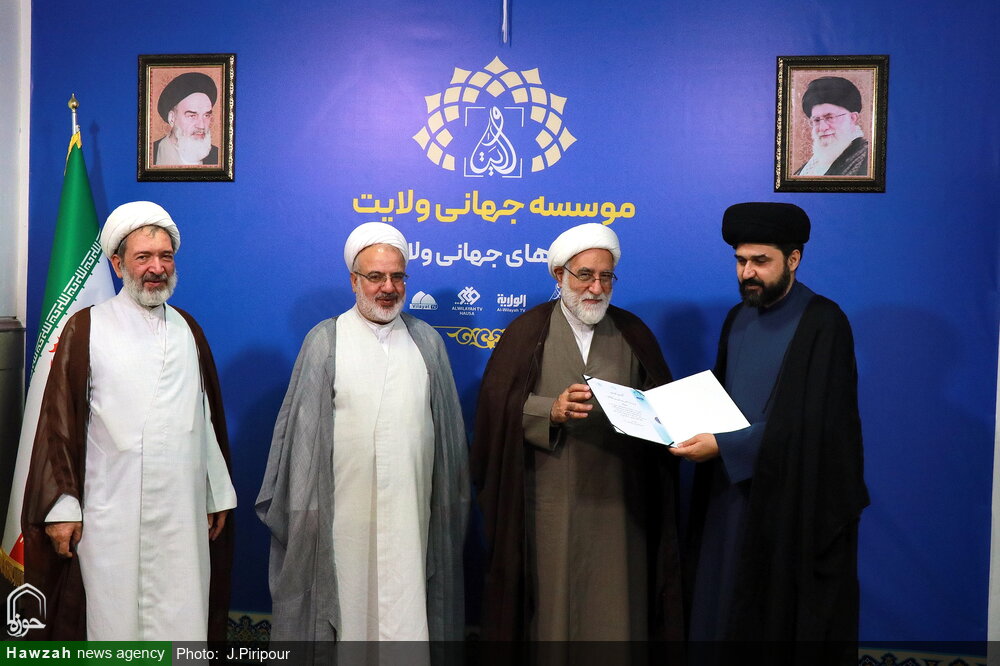 به گزارش خبرگزاری حوزه، در مراسمی با حضور نمایندگان مدیر حوزههای علمیه کشور، احکام اعضا و رئیس شورای سیاستگذاری مؤسسه جهانی ولایت (شبکههای جهانی ولایت) که تحت اشراف آیتالله العظمی مکارم شیرازی فعالیت میکند، با امضای آیتالله علیرضا اعرافی رئیس هیئت امنای مؤسسه و مدیر حوزههای علمیه کشور اعطا شد.