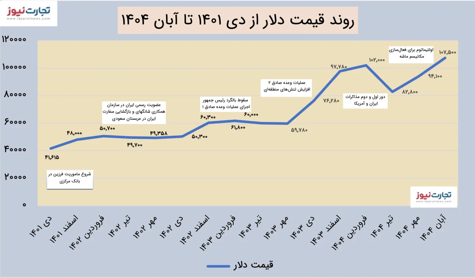 در مرداد سال جاری، اروپا با صدور اولتیماتوم برای فعالسازی مکانیسم ماشه (اسنپبک) فشارها را افزایش و بازار ارز به سرعت به آن واکنش نشان داد. در ۶ شهریور نیز با آغاز رسمی روند اسنپبک، فضای انتظارات ارزی بار دیگر ملتهب شد.روند قیمت دلار در تیرماه امسال با رقم حدود ۸۲ هزار و ۸۰۰ تومان آغاز شد، در مرداد به محدوده ۸۸ هزار تومان رسید و در شهریور با قیمت ۹۴ هزار و ۱۰۰ تومان معامله شد. روندی که نشان داد کاهش ریسک سیاسی در ابتدای تابستان دوام نداشت و با بازگشت پرونده تحریمها، انتظارات افزایشی دوباره در بازار شکل گرفت.