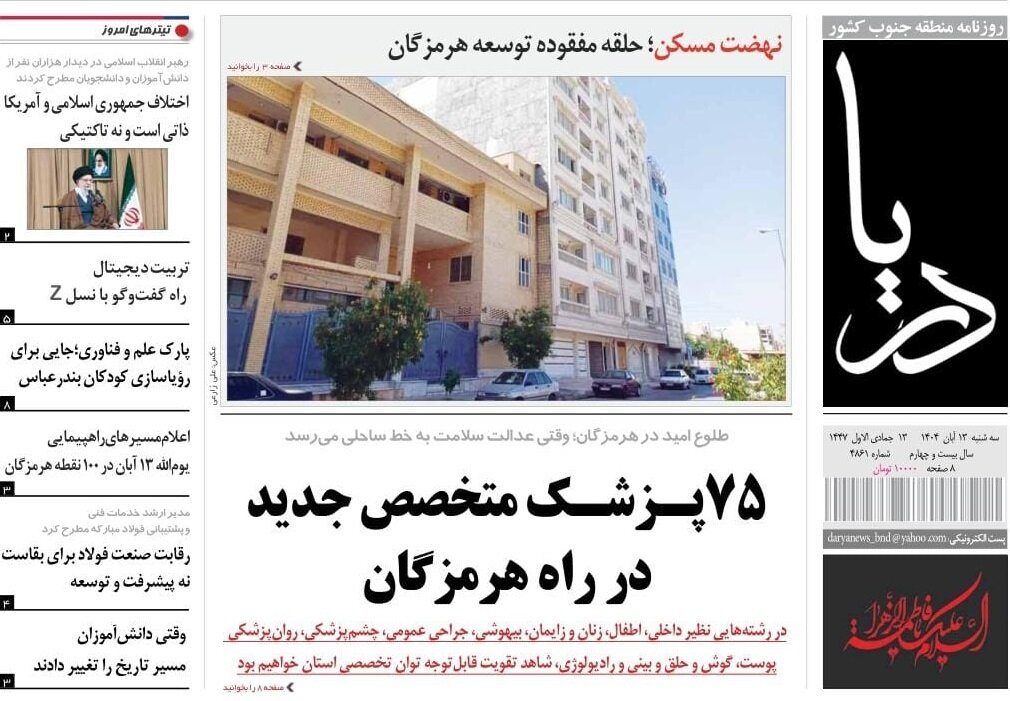 سهشنبه ۱۳ آبان ۱۴۰۴ - ۰۹:۵۹ شناسهٔ خبر: 75657561 - سرویس استانی نسخه قابل چاپ منبع: مهر | لینک خبر صفحه اول روزنامههای هرمزگان سه شنبه ۱۳ آبان صاحبخبر - ∎