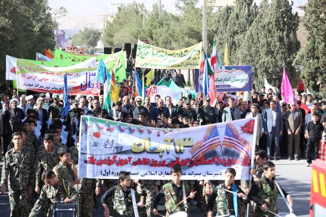 در روز ملی مبارزه با استکبار جهانی، مردم بافق با حضور پرشور دانشآموزان، روحانیون و اقشار مختلف، صحنهای از همبستگی و بصیرت را رقم زدند و همزمان با ۱۳ آبان از میدان شهدا تا امامزاده عبدالله(ع) راهپیمایی کردند.