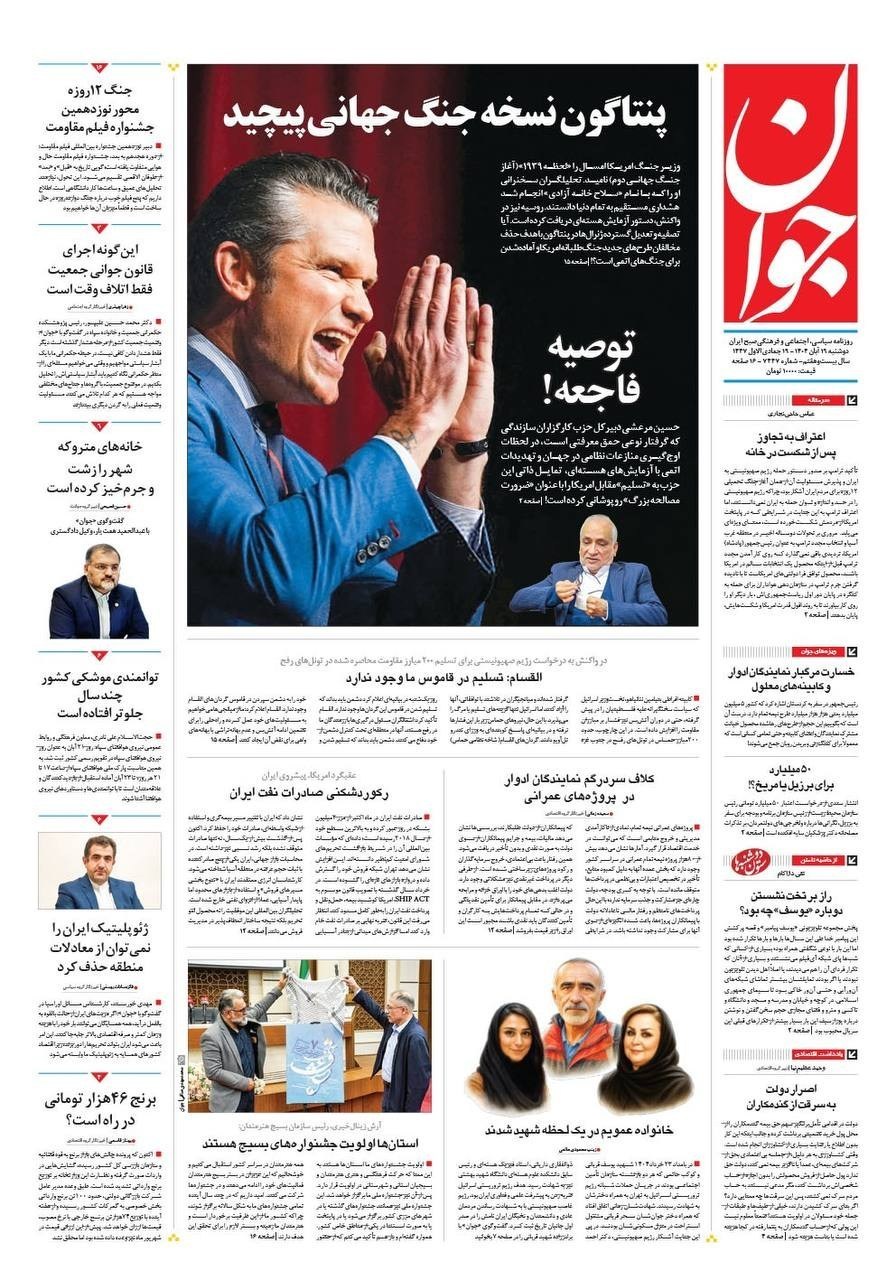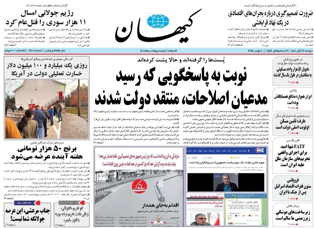 دوشنبه ۱۹ آبان ۱۴۰۴ - ۰۹:۵۲ شناسهٔ خبر: 75752065 - سرویس علمی-فناوری نسخه قابل چاپ منبع: تسنیم | لینک خبر صفحه اول مطبوعات دوشنبه19آبان/ترامپ اینگونه شکست خورد تصاویر منتخب صفحات نخست روزنامههای دوشنبه19 آبان منتشر شد. صاحبخبر - انتهای پیام/ ∎