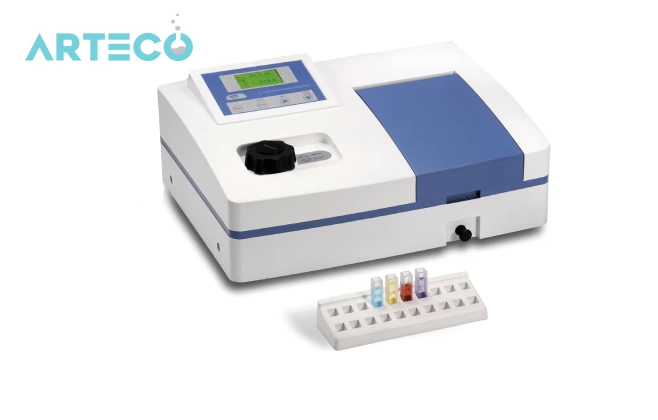 - اسپکتروفتومتر UV-Vis: نور ماوراءبنفش و مرئی را برای تحلیل ترکیبات استفاده میکند و معمولاً در آزمایشگاههای شیمی و زیستشناسی کاربرد دارد.