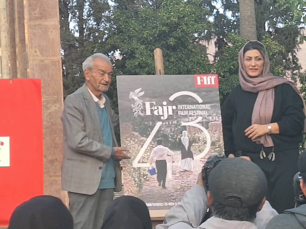 در ادامه، رحیم حودی پیشکسوت سینما و تئاتر و پورسهمالدین هنرمند زن شیرازی برای رونمایی از پوستر بخش «چشمانداز» بر صحنه حاضر شدند.