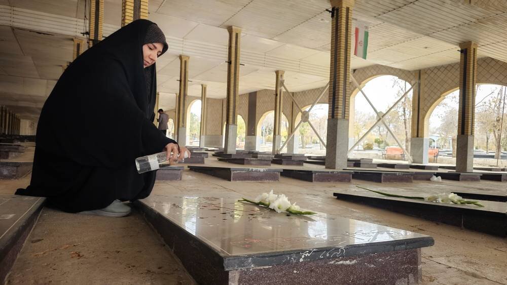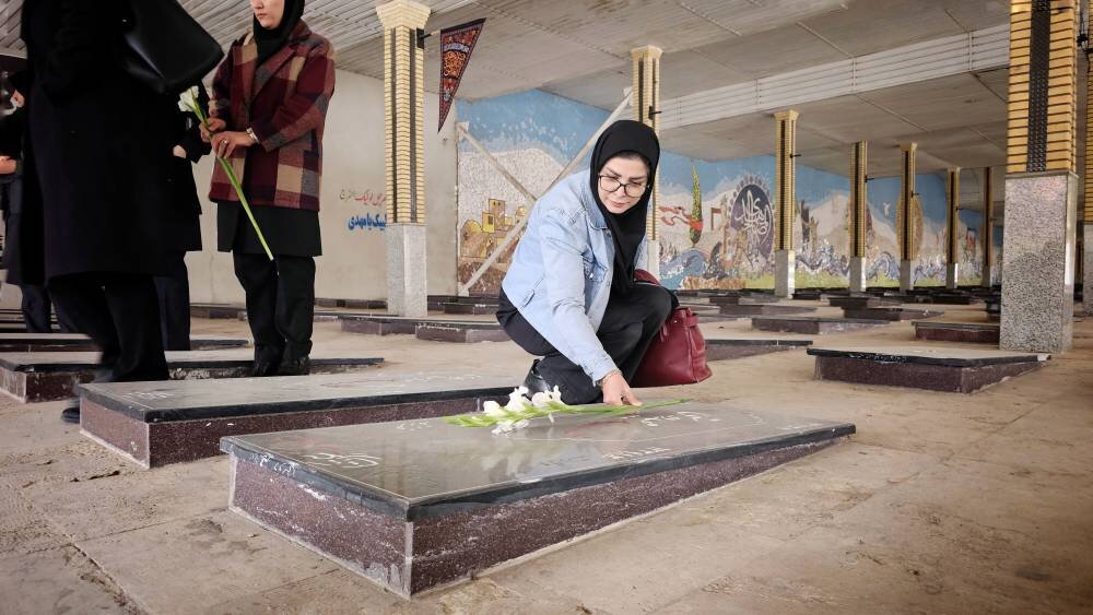 غبارروبی و عطرافشانی گلزار شهدای زنجان همزمان با آغاز هفته کتاب