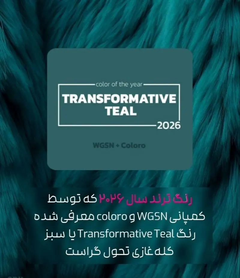 ساعاتی پیش کمپانی مشهور «wgsn» که هر ساله در کنار کمپانی پنتون، رنگ سال رو در بخشهای مختلف اعلام میکنه، با انتشار پستی اعلام کرد رنگ سال 2026 فشن، رنگ «transformative teal» است.